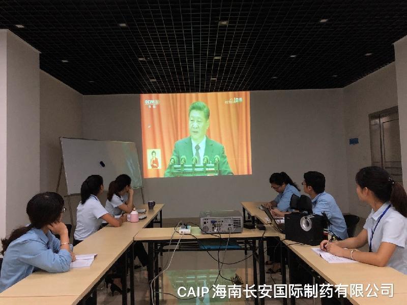 為加強黨建工作及加強黨員的培訓力度,公司安排長安制藥黨支部書記到黨建共享平臺集中觀看了開幕大會現場的直播,公司內部也提前安排了全體黨員、預備黨員及入黨積極分子在公司會議室集中觀看直播,讓大家第一時間了解黨的十九大會議內容,通過學習十九大會議精神,從而提高黨員素質及帶動員工入黨的積極性。