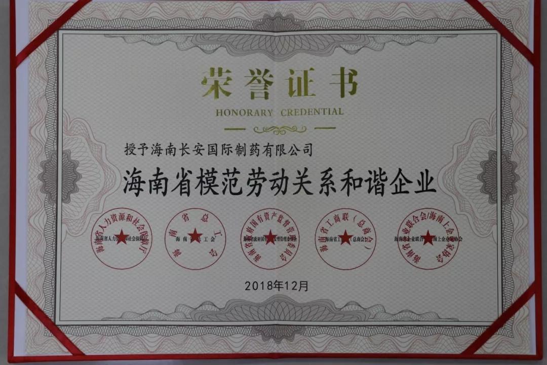 海南長安國際制藥有限公司將發揚成績,再接再厲,積極探索發展和諧勞動關系的新舉措,創造新的業績,為全面建成海南自由貿易試驗區和中國特色自由貿易港做出新的更大貢獻!