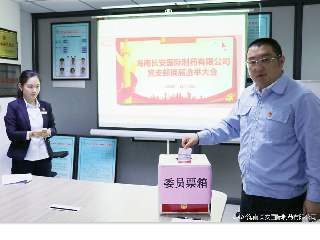 2019年12月18日,根據《中國共產黨黨章》、《中國共產黨基層組織選舉工作暫行條例》有關規定,海南長安國際制藥有限公司黨支部按時召開換屆選舉大會,全體黨員參加。大會嚴格按照有關規定逐項進行。