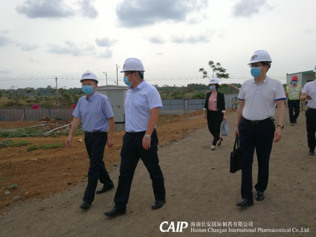 2020年3月20日,海南省工信廳副廳長林敏、產業發展處處長黃家林帶隊蒞臨長安制藥美安科技新城新廠建設項目現場指導工作,調研企業復工復產及新廠項目復工情況,長安制藥總經理汪立冬等進行陪同。