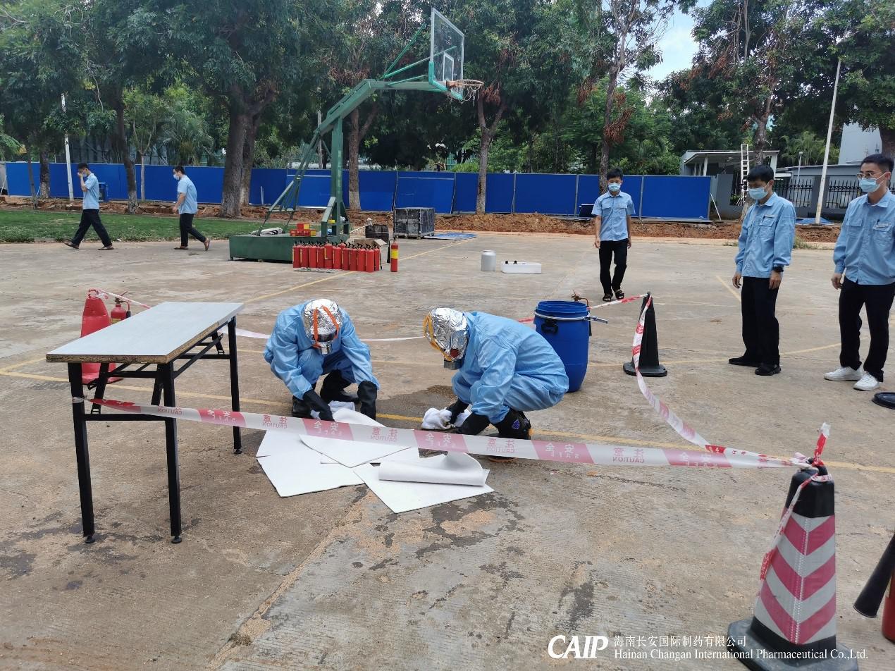下午15:30,抗腫瘤藥原料合成車間危險化學品泄漏應急演練活動正式開始。接到事故險情報告后,搶險組迅速啟動應急預案,成立事故應急救援指揮部組織救援,控制事故現場。組織搶險隊員對事故進行搶險,對事故現場進行警戒,防止事故繼續擴大,組織危險區域內的人員迅速撤離疏散,迅速處理事故,對事故現場進行清理。