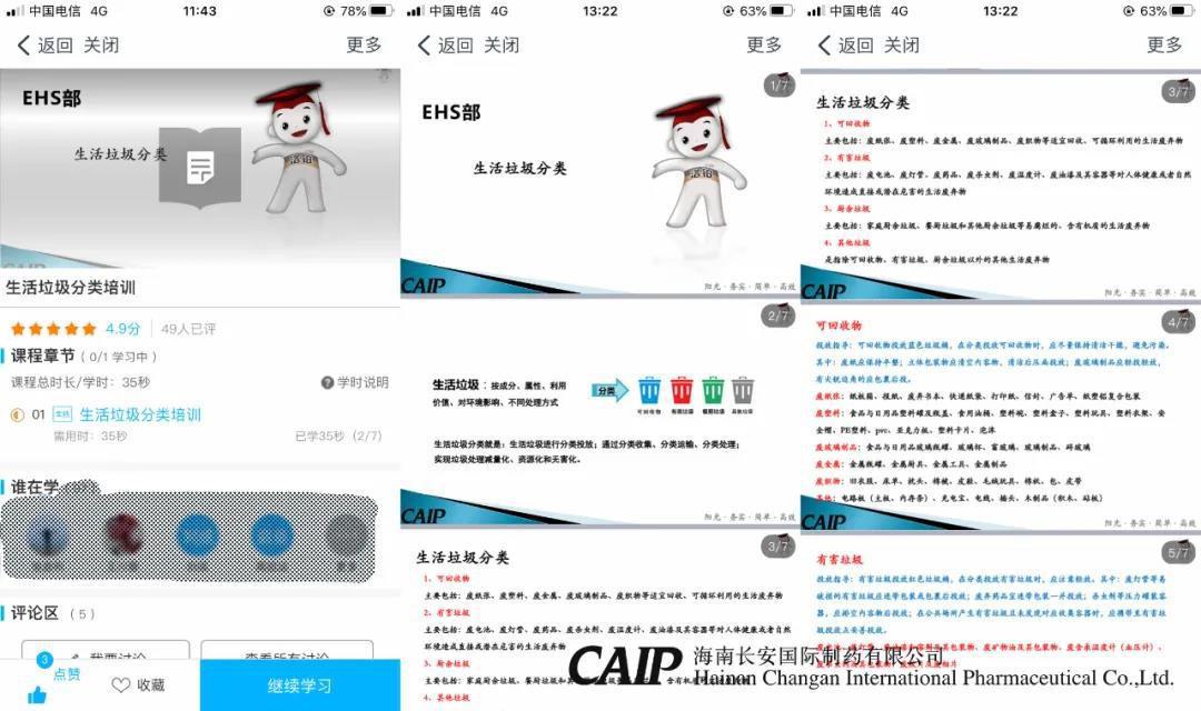 當天,長安制藥還通過網(wǎng)上益佰云學院對全體員工進行了“生活垃圾分類”的在線培訓,確保廣泛深入、全面系統(tǒng)的對員工了解并熟知生活垃圾四分類原則、垃圾投放要求、垃圾收運過程、全公司分類垃圾桶設置等。
