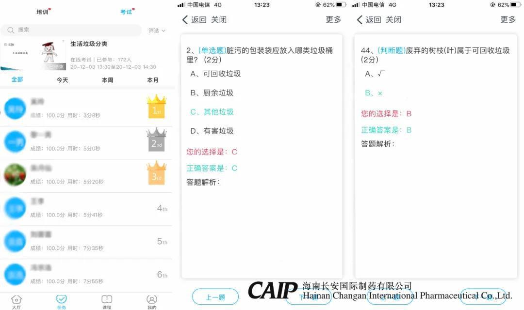 12月3日,長安制藥對當天在崗人員進行了生活垃圾分類在線考試,旨在提高員工意識。