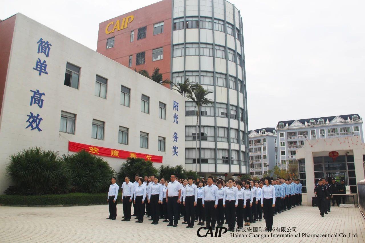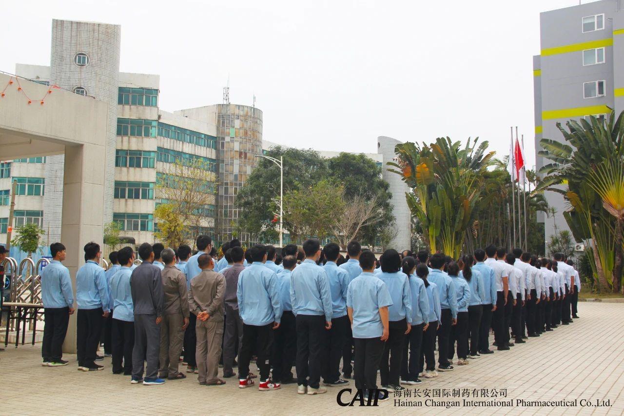 上午8點30分,長安制藥員工身穿統一的工服,整齊列隊,在公司辦公樓廣場舉行開工儀式。首先舉行莊嚴的升旗儀式,3名旗手昂首闊步走入長安制藥辦公樓廣場升旗臺,列隊以待,訓練有素的旗手迎風振臂一揮,五星紅旗、益佰制藥旗、長安制藥旗伴隨著莊嚴嘹亮的國歌聲冉冉升起,高高飄揚在長安制藥的上空,全場人員向國旗行注目禮。