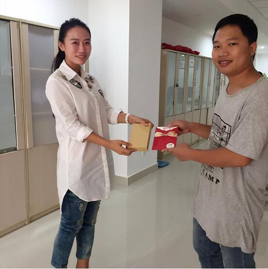 對于很多員工來說,工作繁忙,生日時間也許會忘記,但公司卻為員工記著,2016年11月1日,11月的第一天,公司人力行政部的企業(yè)文化經(jīng)理宋佳為當(dāng)天過生日的生產(chǎn)一線員工陳光圣送上生日祝福,并送上生日禮物,由總經(jīng)理簽名的生日賀卡一張,精美禮品一個,禮物雖不貴重,但是禮物寄予了公司對員工的關(guān)愛。通過公司開展員工生日送祝?;顒硬粌H增強了公司與員工的凝聚力,同時也體現(xiàn)了長安制藥公司“以人為本”的企業(yè)文化理念,提升了員工對公司的認(rèn)同感和歸屬感。